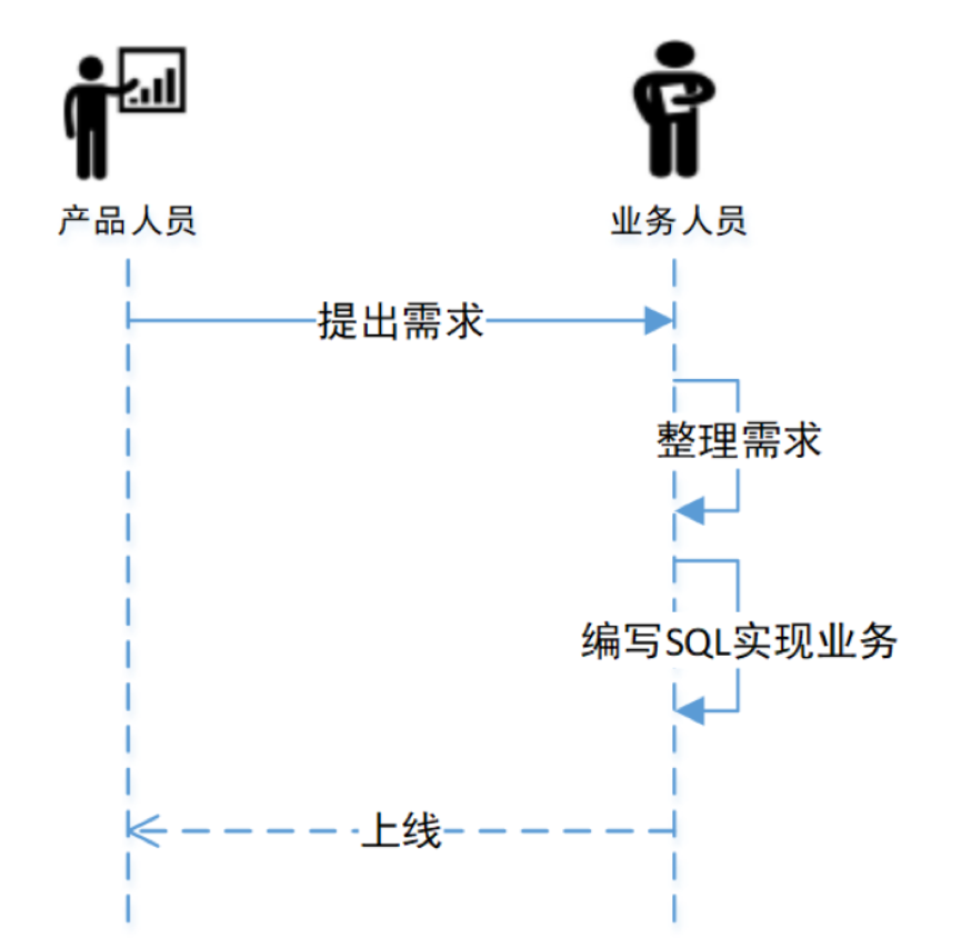 如上图,大数据部门不仅仅做大数据环境运维,还做定制化开发和线上业务维护。恰恰这两点会消耗大量的人力,也增加了管理和沟通成本。举一个需求开发的例子,如下图: