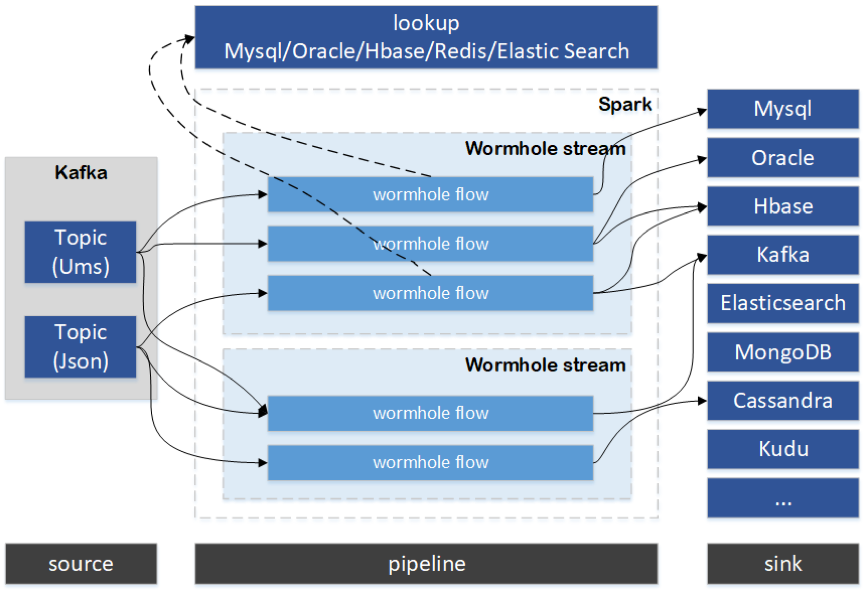 Wormhole是一个面向实时大数据项目实施者的流式处理平台,致力于统一并简化大数据开发和管理,尤其针对典型流式实时/准实时数据处理应用场景,屏蔽了底层技术细节,提供了极低的开发门槛。项目实施者只需简单配置及编写SQL即可支持大部分业务场景,使得大数据业务系统开发和管理变得更加轻量、可控可靠。