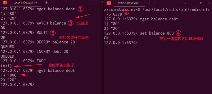 exec之前加的监控锁都会被取消掉了。 - Watch指令,类似乐观锁,事务提交时,如果Key的值已被别的客户端改变, 比如某个list已被别的客户端