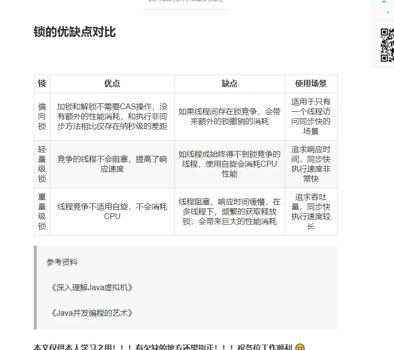 诚然SUN公司也认识到了这一点,在Java SE 1.6对synchronized进行了各种优化后,有些情况下它就并不那么笨重🐖了。在Java SE 1.6中为了减少获得锁和释放锁带来的性能开销而引入偏向锁和轻量级锁。