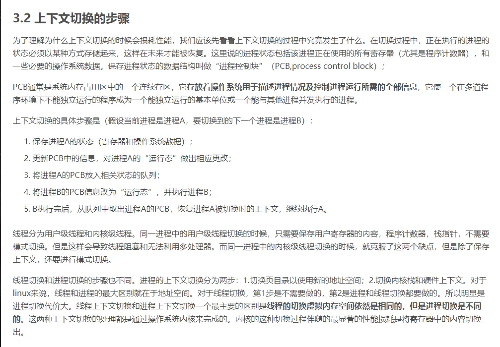 这就像我们同时读两本书,当我们在读一本英文的技术书籍时,发现某个单词不认识,于是便打开中英文词典,但是在放下英文书籍之前,大脑必须先记住这本书读到了多少页的第多少行,等查完单词之后,能够继续读这本书。这样的切换是会影响读书效率的,同样上下文切换也会影响多线程的执行速度。