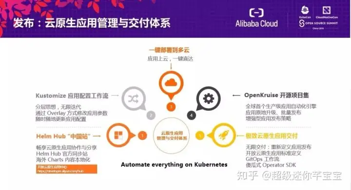 云原生应用管理与交付体系涵盖国内首个开放云原生应用中心 Cloud Native App Hub、云原生应用自动化引擎 OpenKruise 等服务。