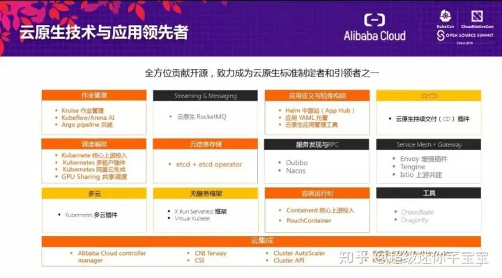 阿里云一直致力于回馈社区、积极拥抱开源,是国内在云原生领域的开源贡献最全面的科技公司,涵盖编排调度、作业管理、无服务器框架等: