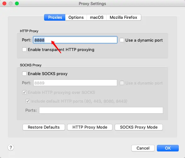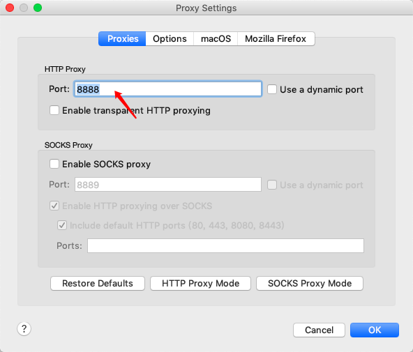 如果 8888 端口被占用的话,那么可以proxy settings 面板调整port