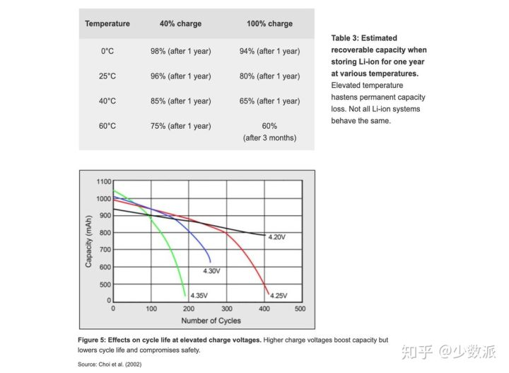 电池大学(Battery University) 在 How to Prolong Lithium-based Batteries 一文中详细地介绍了让锂电池老化的多种因素。如果大家感兴趣的话,可以点击链接来仔细探索电池爱憎分明的一生,不过因为篇幅限制,本文仅简单谈一谈其中几个因素。
