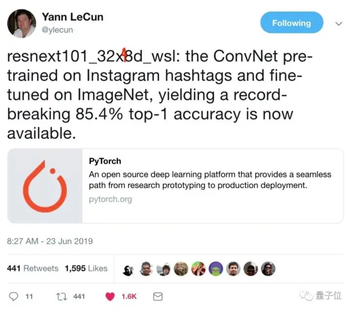 它叫ResNeXt WSL,有超过8亿个参数,用Instagram上面的9.4亿张图做了 (弱监督预训练) ,用ImageNet做了微调。