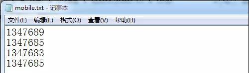 在参数化的场景中,存储文件的方式很多,也可以使用记事本,不一定说非要csv的文件,在记事本中填写测试的电话号,见内容: