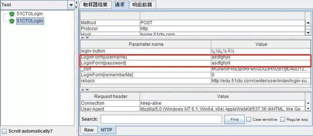 对请求的这些参数进行参数化的处理,特别是对登录账号和登录密码,见51cto.txt文件的内容:
