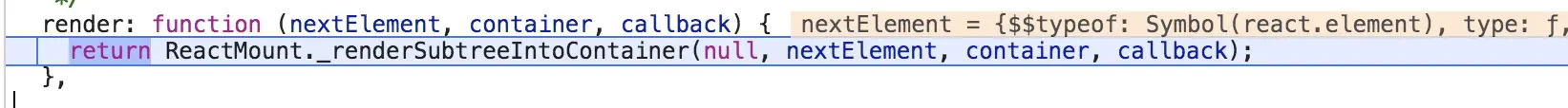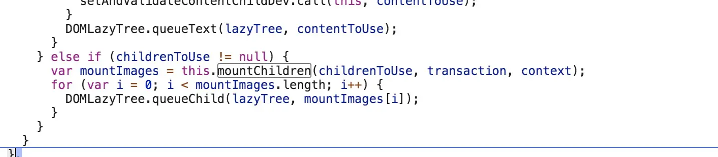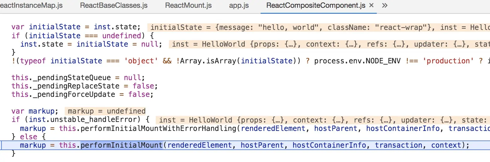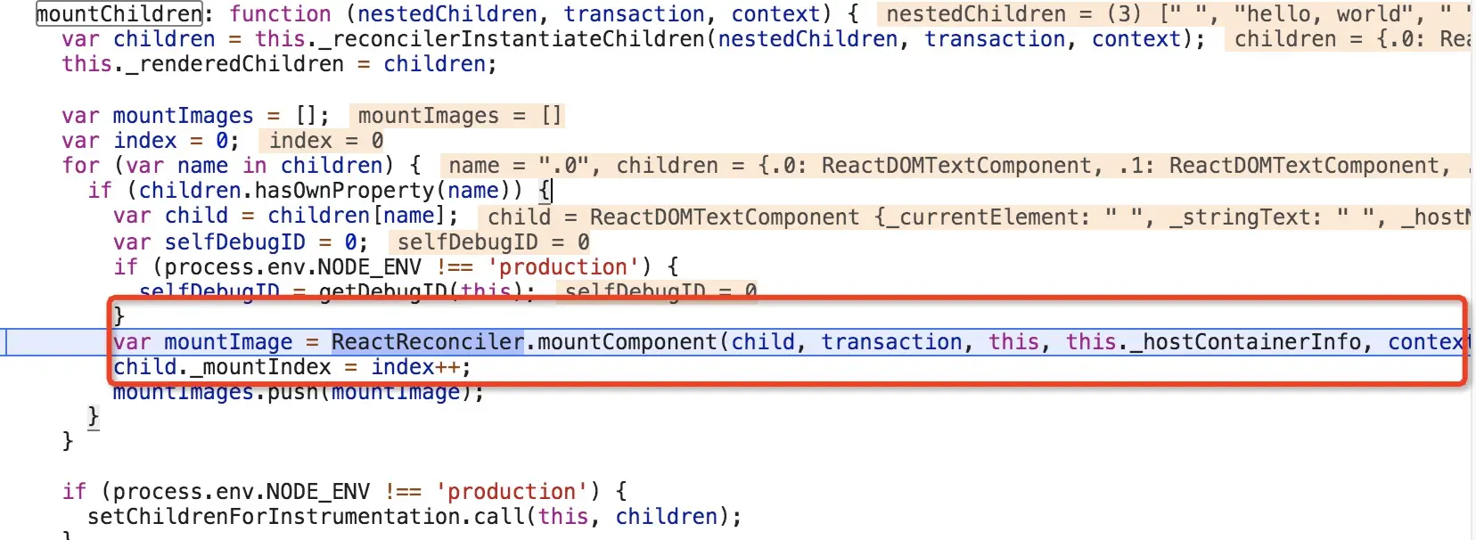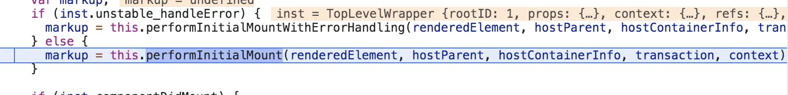 var nextMarkup = ReactReconciler.mountComponent(this._renderedComponent, transaction, this._nativeParent, this._nativeContainerInfo, this._processChildContext(context));