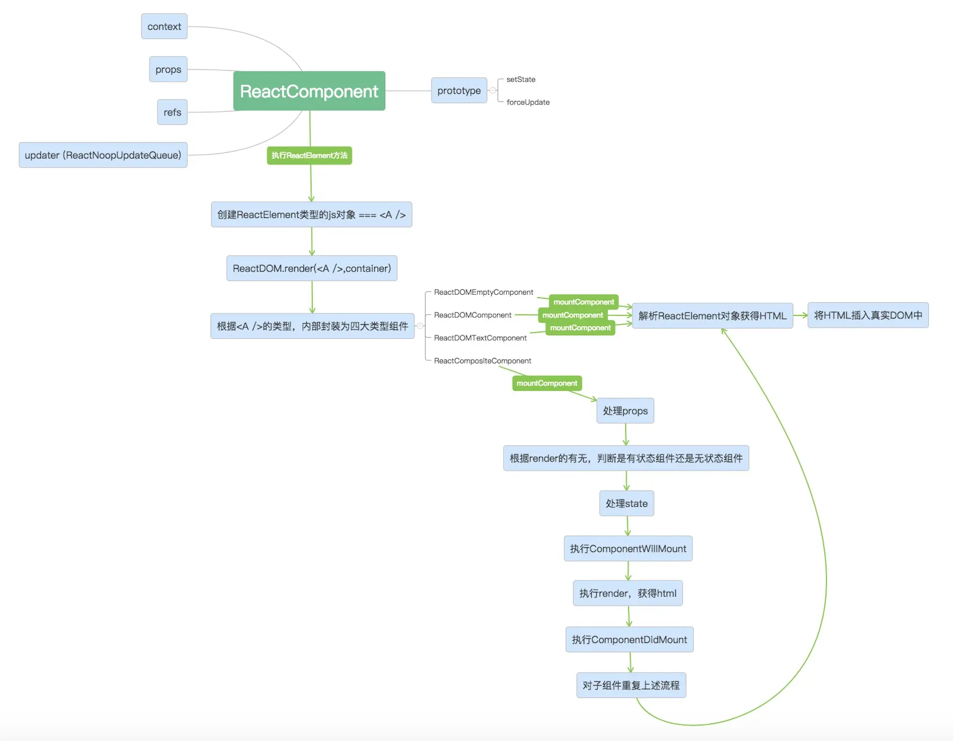总结 setState流程还是很复杂的,设计也很精巧,避免了重复无谓的刷新组件。它的主要流程如下 :