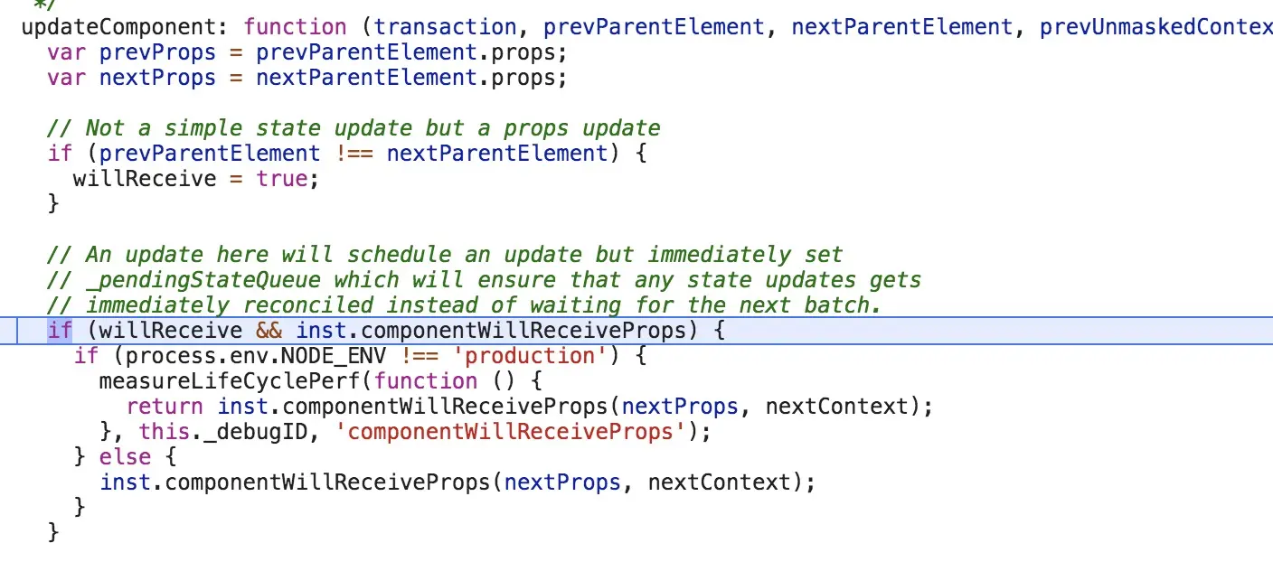if (component._currentElement.props === component._renderedComponent._currentElement) {