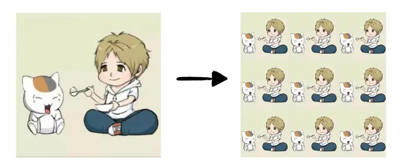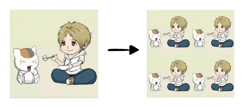 四屏,我们采用的方式是把原图缩小为原图的1/4,分别放置在左上、左下、右下和右上,看下面效果图