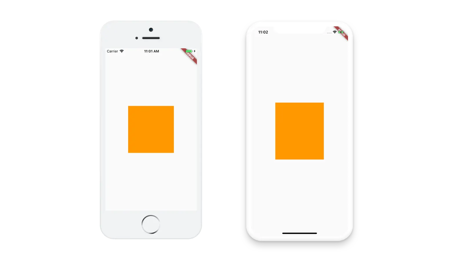 下面就是矩形显示在 iPhone 5s 和 iPhone XS Max 的样子。
