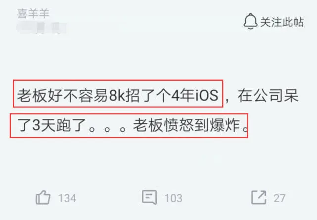 最近在职场论坛上看到这样一个帖子:老板8千工资招了一个4年ios程序员,干3天就辞职,结果老板蒙了!这是怎么回事呢?