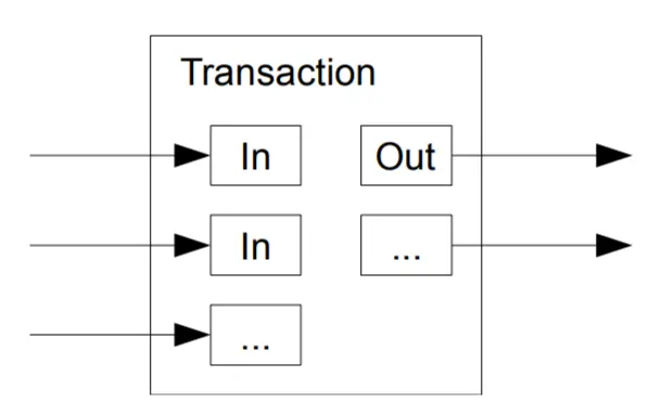 比特币也会存在面值组合和找零的问题,因此也需要组合来自多个交易获得的余额,以及将找零返回给付款方。因此,比特币的交易支持多输入和两个输出:一个输出用来支付,另外一个输出用来找零。