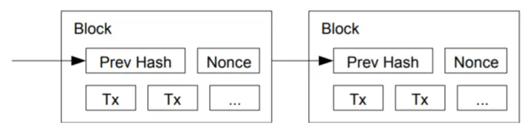 比特币系统使用区块链来记录交易历史,一段时间内的所有交易会被保存在一个块中,块的哈希包含了当前块的数据以及上一个块的哈希。