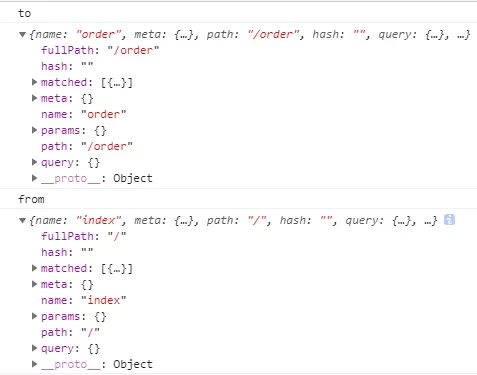 vue监听路由变化--watch Q天涯过客 2019-06-29 3,535 阅读1分钟 watch监听路由变化, watch:{ $route( to , from ){ console.log(to,from) } } to , from 分别表示从哪跳转到哪,都是一个对象 to可以理解为跳转新的路由地址 from理解为从哪个路由开始跳转