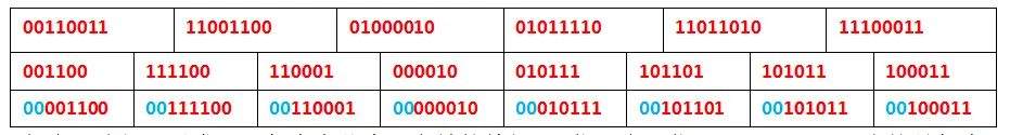 然后每一个单元前边再加个00,这样就使得每个单元等等于8位,即一个比特位。