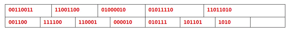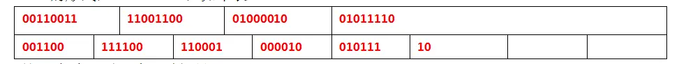 1)对于不足6bit位的单元:这个直接在结尾补0,直到6位。这里最后剩余2个bit位。