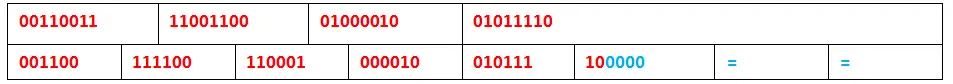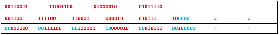 1)对于不足6bit位的单元:这个直(防盗连接:本文首发自http://www.cnblogs.com/jilodream/ )接在结尾补0,直到6位。这里最后剩余4个bit位。