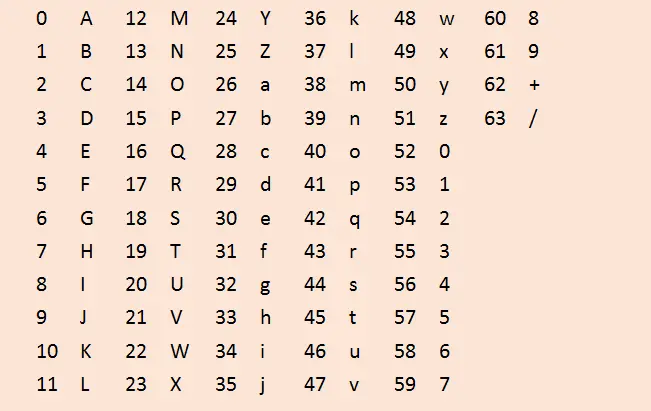 同时还有一份base64的编码转换表: