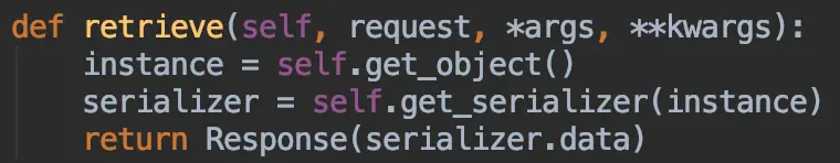 首先,要知道在哪里修改这个返回,翻一下源码发现这些返回信息是写在create()、list()、retrieve()、update()、destroy()这些方法里的,这些信息都放在Response对象里面返回到前端页面去。