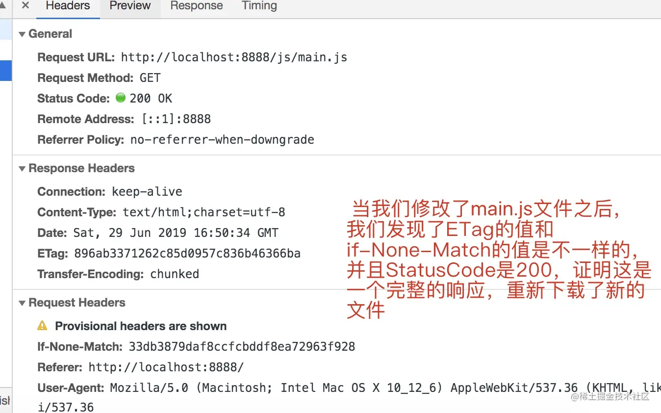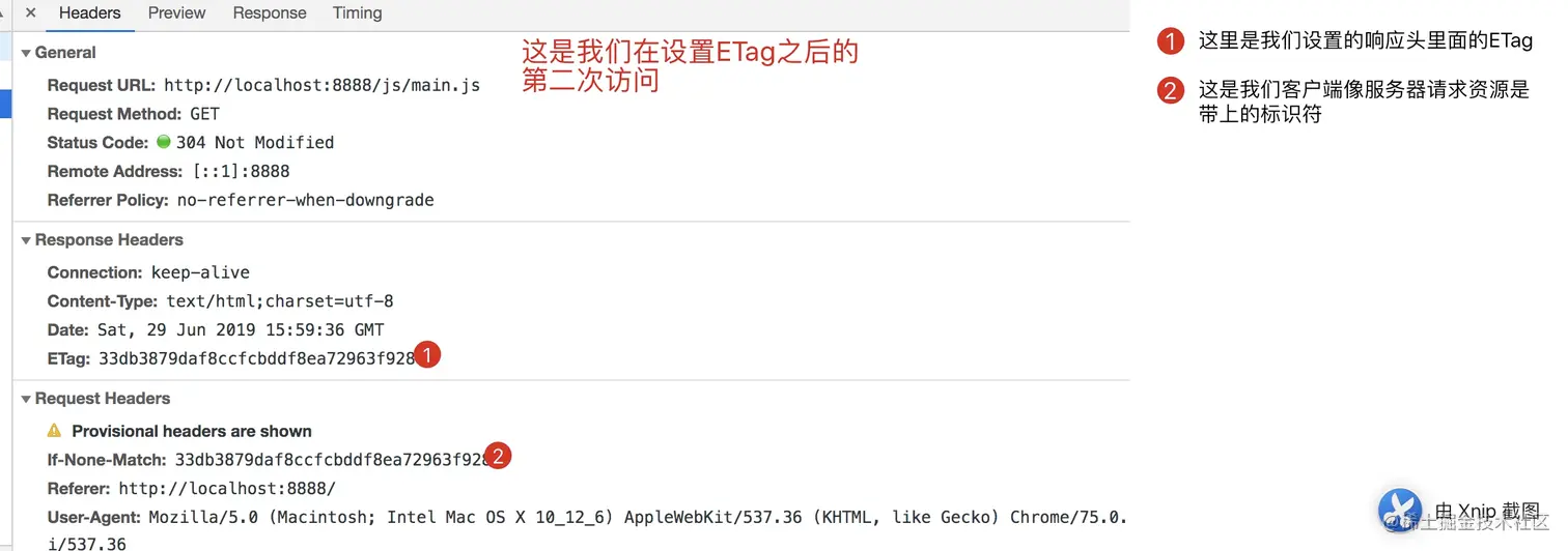 HTTP的ETag响应头是资源的特定版本标识符。可以让缓存更高效,并节省宽带,因为如果内容没有改变,web服务器不需要发送完整的响应。