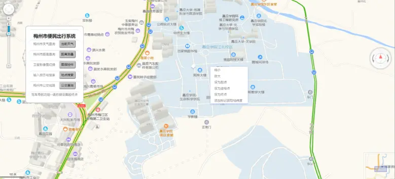 - 高德地图的右键菜单API不需要引入插件,直接定义一个变量引用API右键菜单AMap.ContextMenu(map)传入一个地图对象就可以了,这样我们地图有可以出现一个菜单列表,但是按照我们普通用户的实用习惯一般都是通过点击鼠标右键来生成这个菜单,所以本系统还需要定义一个变量mouseTool来引用一个API鼠标工具AMap.MouseTool(map)。 这里本系统通过DOM操作的方式来设置右键菜单的文字内容和CSS样式,所以定义一个变量content通过push方法来不断添加需要的功能名称,这里的重点是通过DOM操作可以给这些功能都增加一个点击事件oncilck的名称。然后再为这个菜单的出现位置绑定一个地图右键事件,当通过地图对象map的on事件绑定,使用其参数(e)来获取鼠标当前位置的经纬度lnglat。通过上面一系列设置能够实现用户在地图任一地点点击鼠标右键能让右键的菜单正确的出现在用户点击的地方。