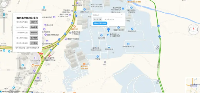 - 利用高德地图提供的JavaScript API 加载底图,同时增加一个新的地图控件来把原有的标准底图切换到卫星影像底图,方便了用户根据自己的实际需要能够加载恰当的背景地图,当用户点击对应的卫星图层时,底图会切换为卫星影像图,再点击图标,底图会切换为原来的标准底图。同时加入图层显示插件,可以在任一底图之上显示路况路网图层。