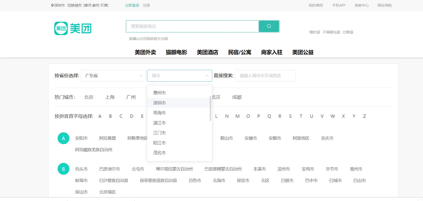 实现,用户选取了某个省份就返回这个省份的所有城市数据。