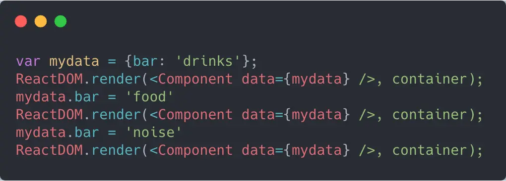 mydata和新的mydata实际上是相同的实体对象(只改变了对象的内部值)。由于引用是triple-equals-equal(===),所以进行相等检查(==)不会告诉我们值是否发生了更改。唯一可能的解决方案是创建数据的深度副本,然后进行深度比较——但是对于大型数据结构(特别是具有周期的数据结构),这可能需要的代价特别高。 mydata对象可能包含对函数的引用,这些函数在闭包中捕获了变量。 React无法窥视这些闭包,因此React无法复制它们或者验证它们的相等性。mydata对象可能包含在父组件渲染期间重新实例化的对象的引用(即,不是triple-equals-equal(===))但在概念上相等(即,相同的键和相同的值)。深度比较(代价昂贵)可以检测到这一点,但是函数比较又出现了问题,因为没有可靠的方法来比较两个函数以确定它们在语义上是否等价。