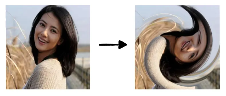 图形漩涡主要是在某个半径范围内,把当前采样点旋转一定角度,旋转以后当前点的颜色就被旋转后的点的颜色代替,因此整个半径范围里会有旋转的效果。 如果旋转的时候旋转角度随着当前点距离半径的距离递减,整个图像就会出现漩涡效果,如上图一样。 这里会使用抛物线递减因子: (1.0 - (r / Radius) * (r / Radius))