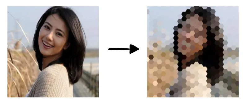 我们需要做的效果就是让一张图片,分割成由六边形组成,让每个六边形中的颜色相同,下面采用直接取六边形中心点像素来实现