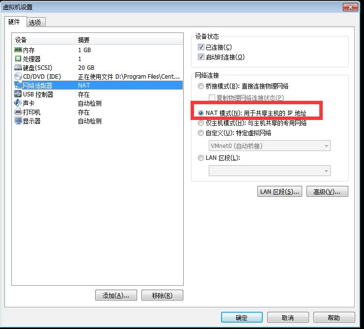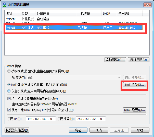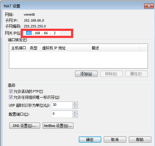 记住NAT设置中的子网IP、子网掩码、网关IP三项,接下来配置文件主要是这三项。 -