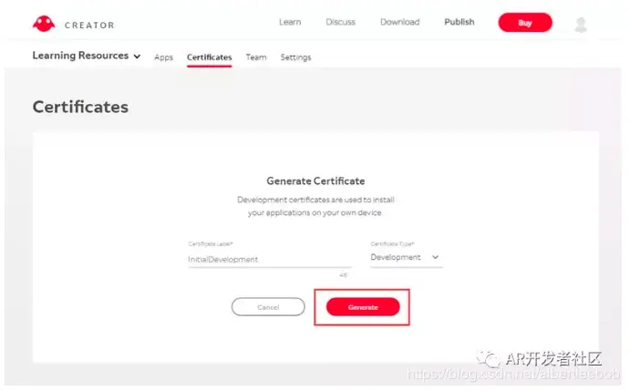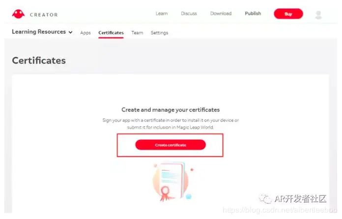 2.在Magic Leap Creator Portal中,单击Publish > Certificates.
