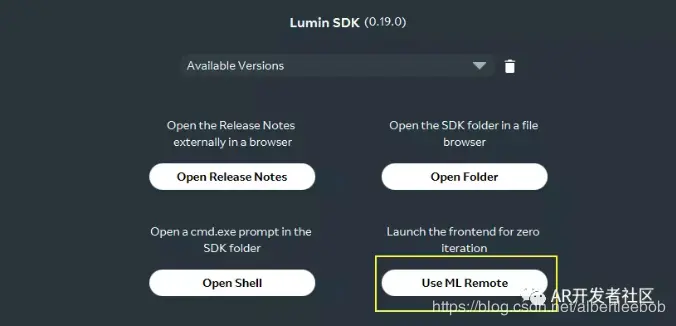 1.打开Magic Leap Package Manager,选择所需版本的Lumin SDK后,单击Use ML Remote。