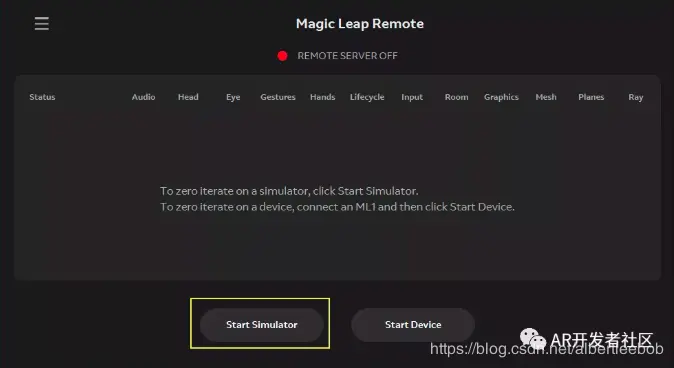 2.在Magic Leap Remote窗口中,单击Start Simulator。