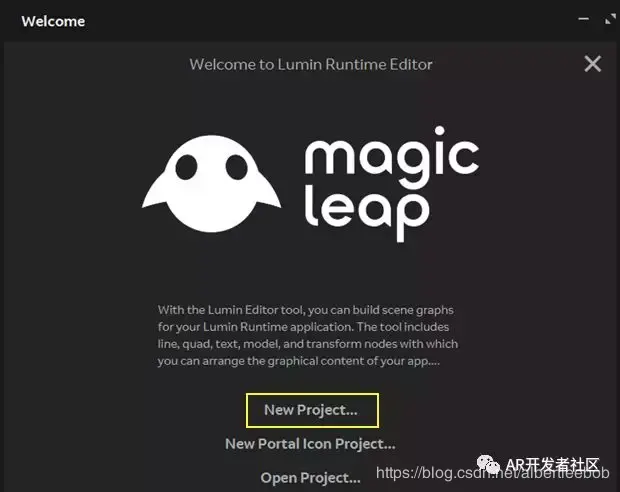 Step 4:创建一个新的Lumin Runtime Editor项目