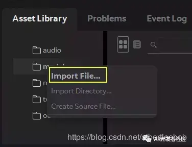 1.在 Asset Library,Model右键单击,选中Import File。如下图: