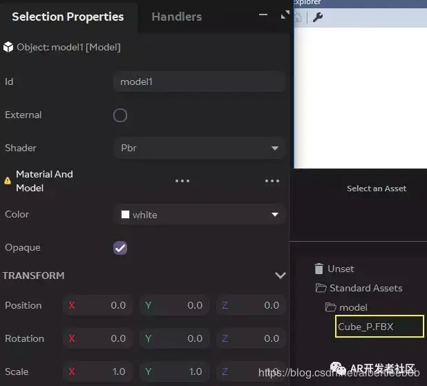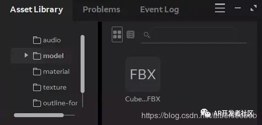 2.点击Model这个文件夹,选中刚刚生成的Cube_P.FBX。如下图: