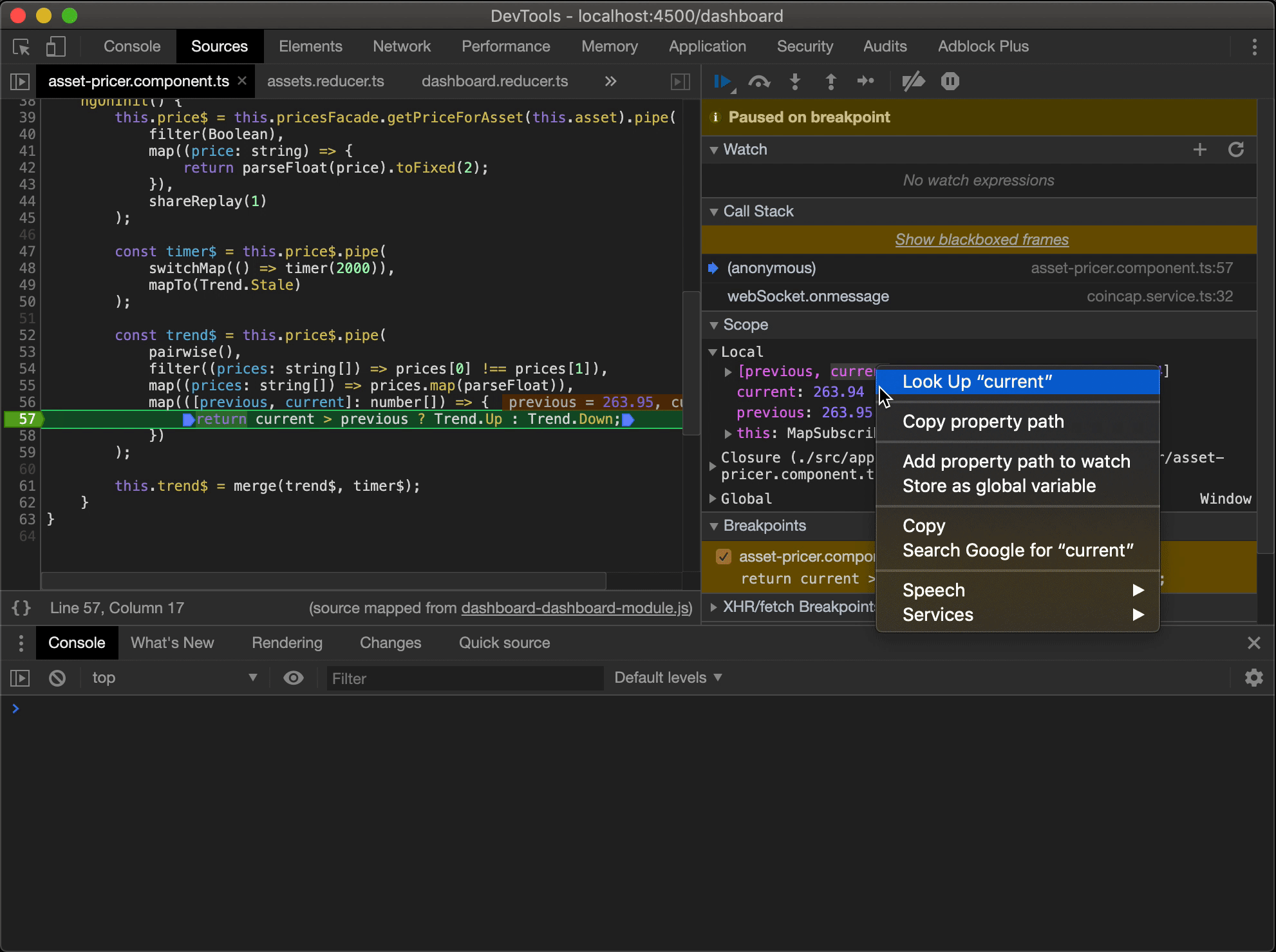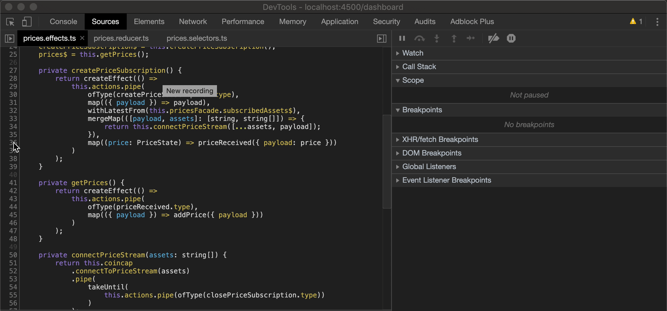 由于使用哪种前端技术对调试来说并不重要,为了更方便地向您解释断点,我将调试用于培训的一个 Angular 项目。