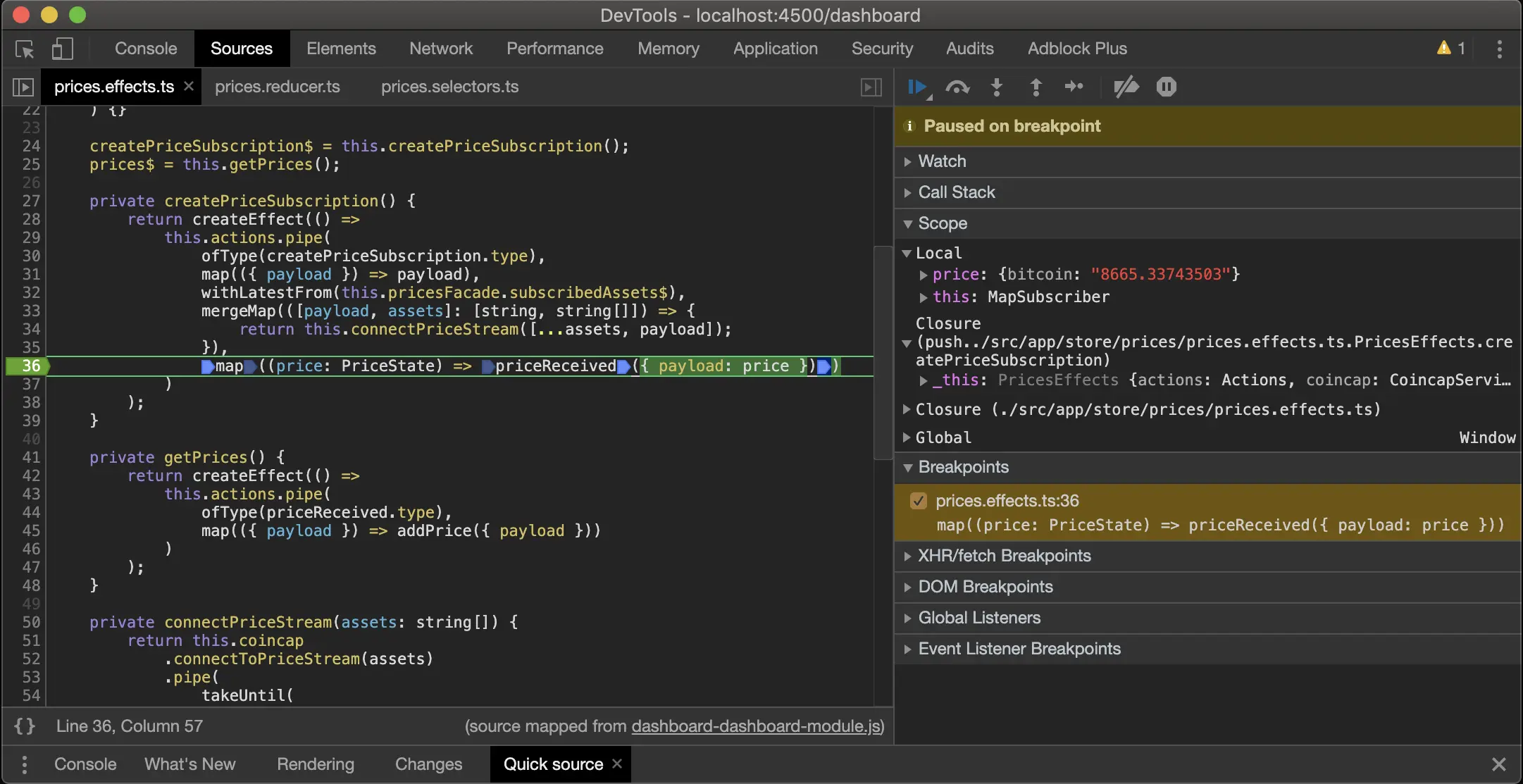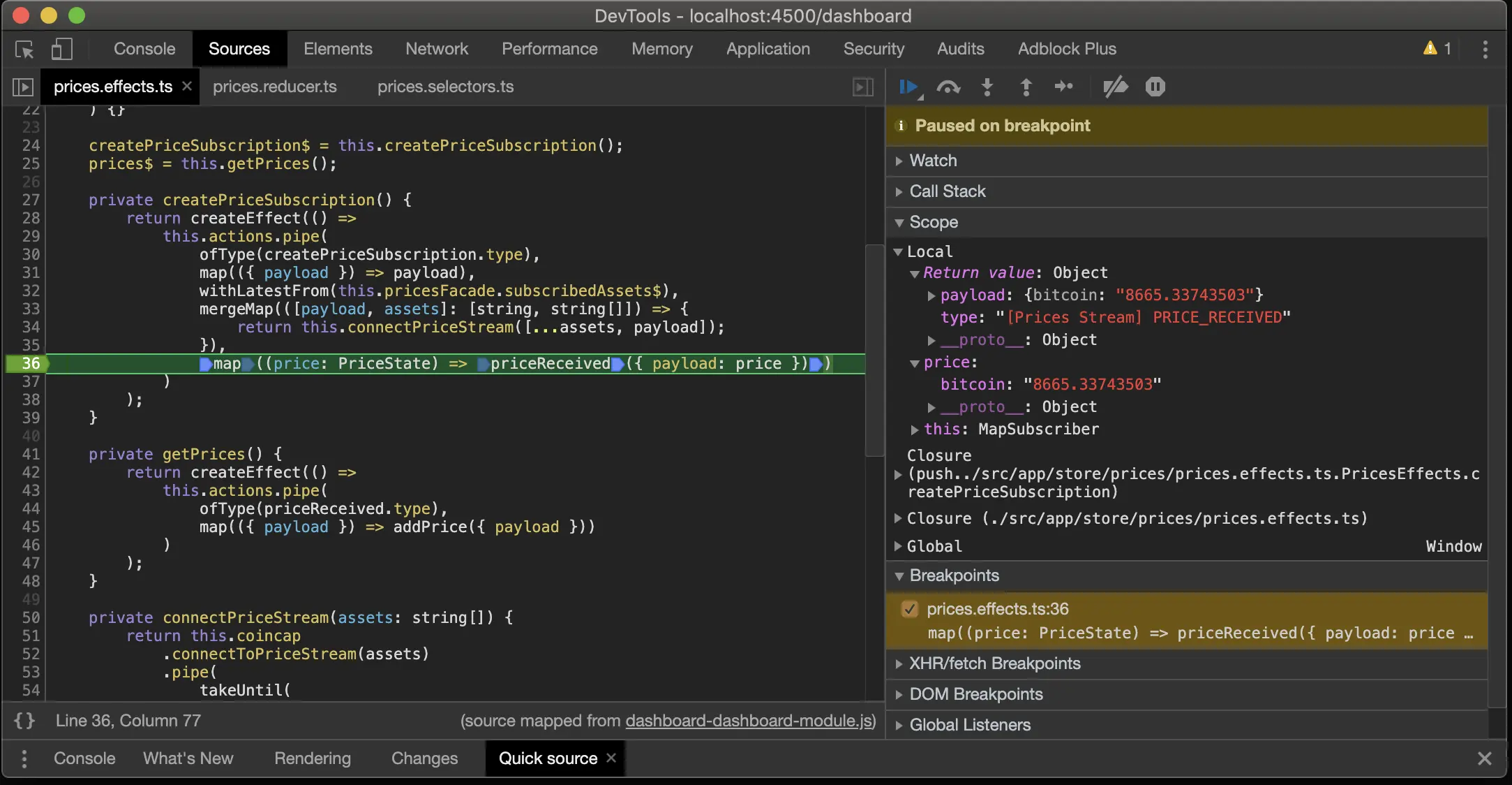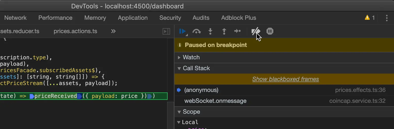 在下图中,一旦 priceReceived 执行,第三个断点就会被使用。