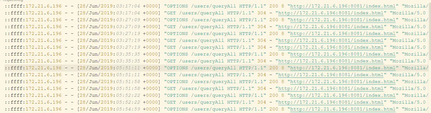 app.use(logger('combined', { stream: accessLogStream }));(2)日志记录截图如下: