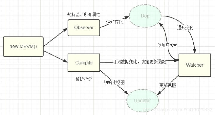 }Vue的双向数据绑定就是根据上面的原理来实现的 只要在读取值时收集观察者 在赋值时触发观察者更新函数 就可以实现数据变更 从而实现DOM重新渲染