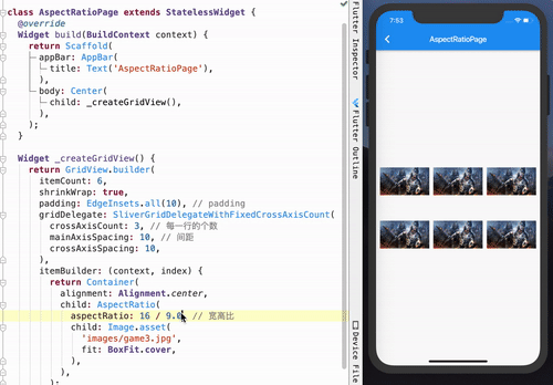 但是有了 AspectRatio,我们的代码就会简单很多,看一张动图: