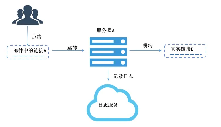 运营同学可能在邮件中嵌入了一些链接,邀请用户注册、登录、访问某个功能。为了追踪用户是否打开了这个链接,我们需要在web tracking上封装一层。把真实的链接B封装起来,先跳转到A,在A记录下日志后,再跳转到真实地址B。