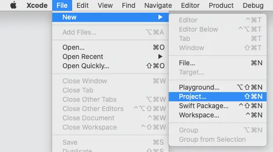 Fire up Xcode 11, select “File > New > Project…” or just press Cmd-Shift-N: