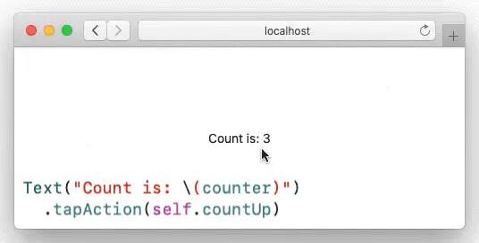 We then use the SwiftUI tapAction modifier to attach an event handler to our Text. Finally, we show the current value within the label:
