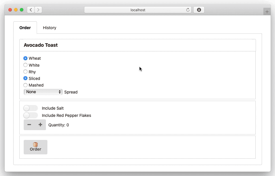 Excellent, the basics work. Let’s bring in more interactivity. The following is based on the “Avocado Toast App” used to demo SwiftUI in the SwiftUI Essentials talk. Didn’t watch it yet? Maybe you should, it is about delicious toasts.