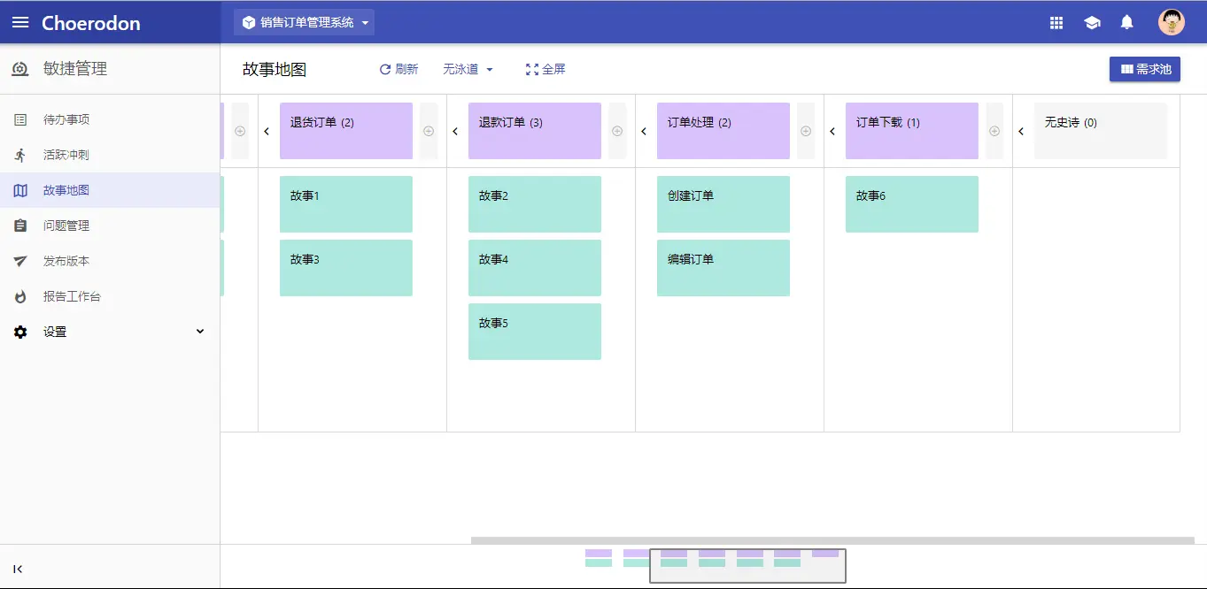 - 支持切换版本泳道,所有在故事地图和需求池中的问题将会按照版本的不同来展示。